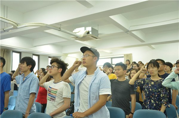 2018年新发展党员和预备党员合影 接下来是来自本科和研究生的4位优秀党员代表进行发言,研究生优秀毕业生党员代表王文洁分享了自己在这四年中的收获,她表示,研究生三年她收获颇丰,在学生工作和学业上均取得不错的成绩,同时感谢学院老师的栽培;本科优秀毕业生党员代表周玉莹同学认为大学时光转瞬即逝,我们应珍惜时光,不懈奋斗,肩负起时代赋予我们的责任;2016级研究生党员代表梁鑫鑫同学分享了她在师大六年的学习时光和从事党务工作两年以来的收获与感受,她时刻提醒自己做到习总书记要求的“平常时候看得出来,关键时刻站得出来”。本科生党员代表刘博涛分享了她在学习工作的收获和体会。