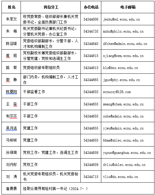 党委组织部、党校、机关党委部门人员岗位分工
