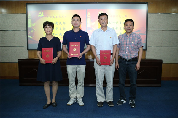 党远鸿书记为先进基层党支部颁发荣誉证书