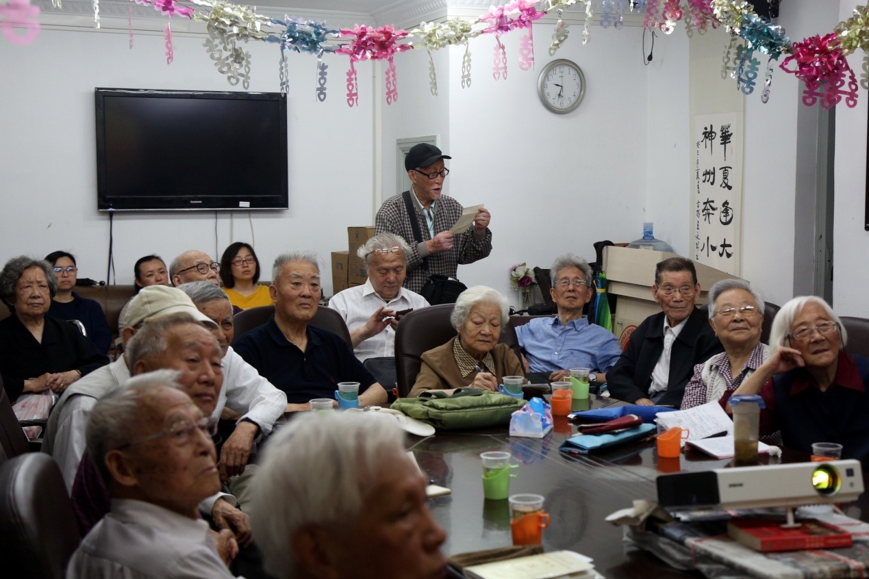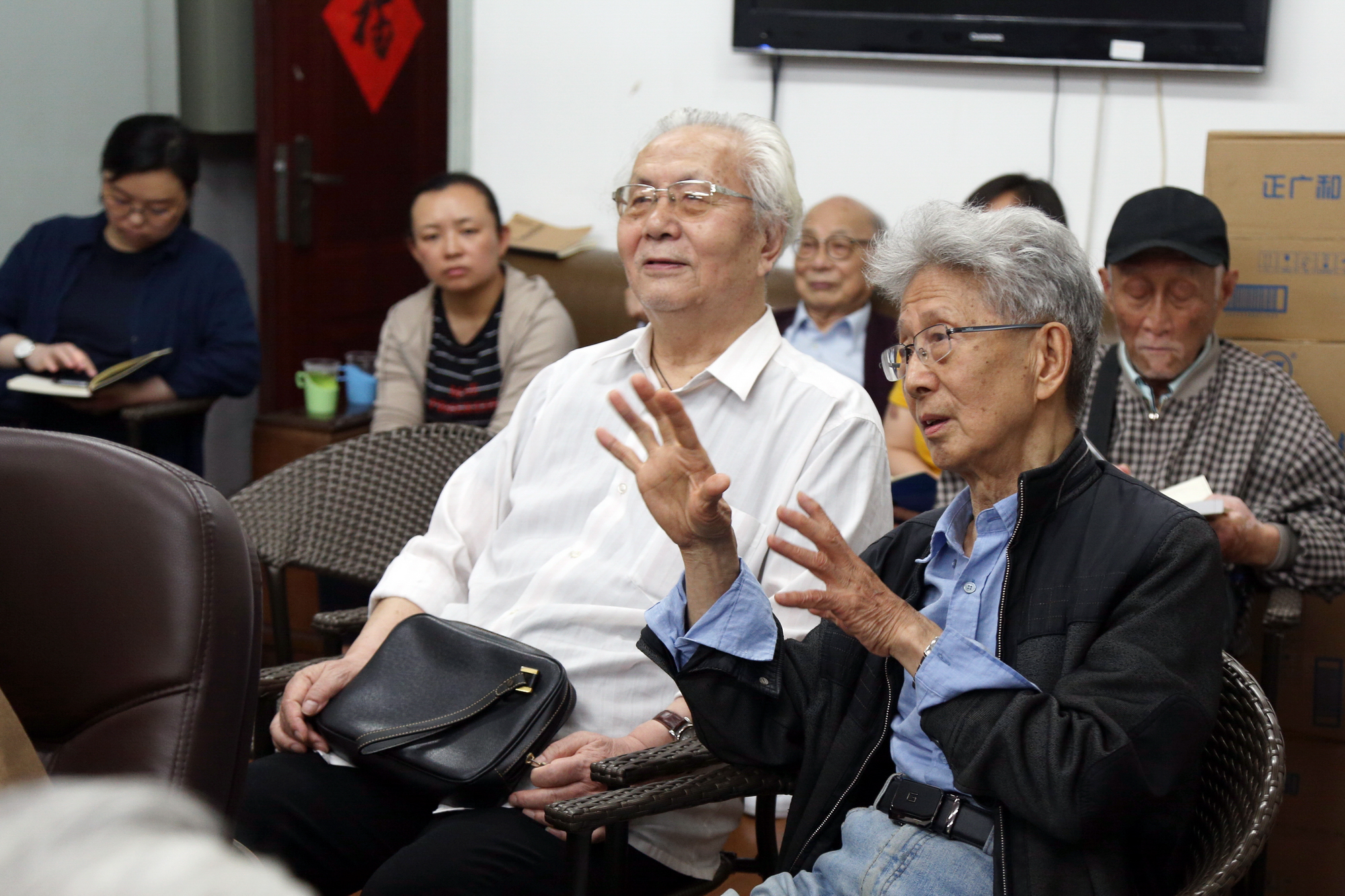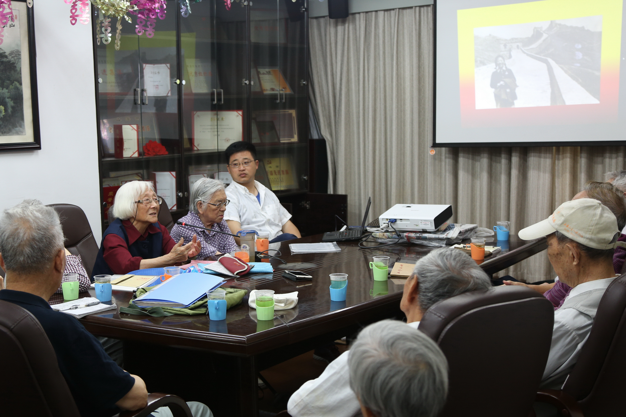 离退休党工委副书记时明惠介绍老同志老照片 一张张照片勾起了老同志在战争年代、白色恐怖中浴血奋斗的无限回忆,大家纷纷踊跃发言,讲述70年前自己如何踏上革命道路的点点滴滴,讲述每张照片背后的一段段往事。与会老同志中有很多是通过参加地下党领导的学生运动,加入地下党,最后成为坚定的革命者。70年前,国家积贫积弱,人民流离失所,老同志们在党的领导下,凭借坚定的信念和顽强的意志投身革命,为新中国的成立做出了自己的贡献。时至今日,再次回想起1949年5月27日上海解放的这一天,依然能清晰地记起当天的一切;讲到动情处,有的老同志泪雨哽咽,激动万分。老同志们在发言最后感恩党和国家对他们的培养,纷纷表达不忘初心跟党走的真情实意。 我校目前拥有70位抗战和解放时期参加革命的离休干部。今年是新中国和上海解放70周年,老龄办党支部的同志们结合党建工作创新创优项目的创建,学习身边老同志参加革命、为新中国成立和建设奋斗不息的先进事迹,从他们身上汲取精神力量,从思想上提高党性觉悟和修养,用心用情做好老龄工作。大家表示老同志是上海解放的参与者和见证者,没有革命前辈前赴后继的奋斗和牺牲,就没有共和国辉煌灿烂的今天。通过这次主题党日活动,不仅了解了老一辈对对党的情怀和忠诚,更真切感受到老一辈“为有牺牲多壮志,敢叫日月换新天”的革命乐观主义精神,进一步增强了青年一代建设新时代中国特色社会主义的责任感和使命感。 安振兴同志以诗歌《惊天动地的小事》讴歌入城解放军秋毫无犯不扰民的故事,以《白发愈深情愈浓》表达爱党爱国之情。