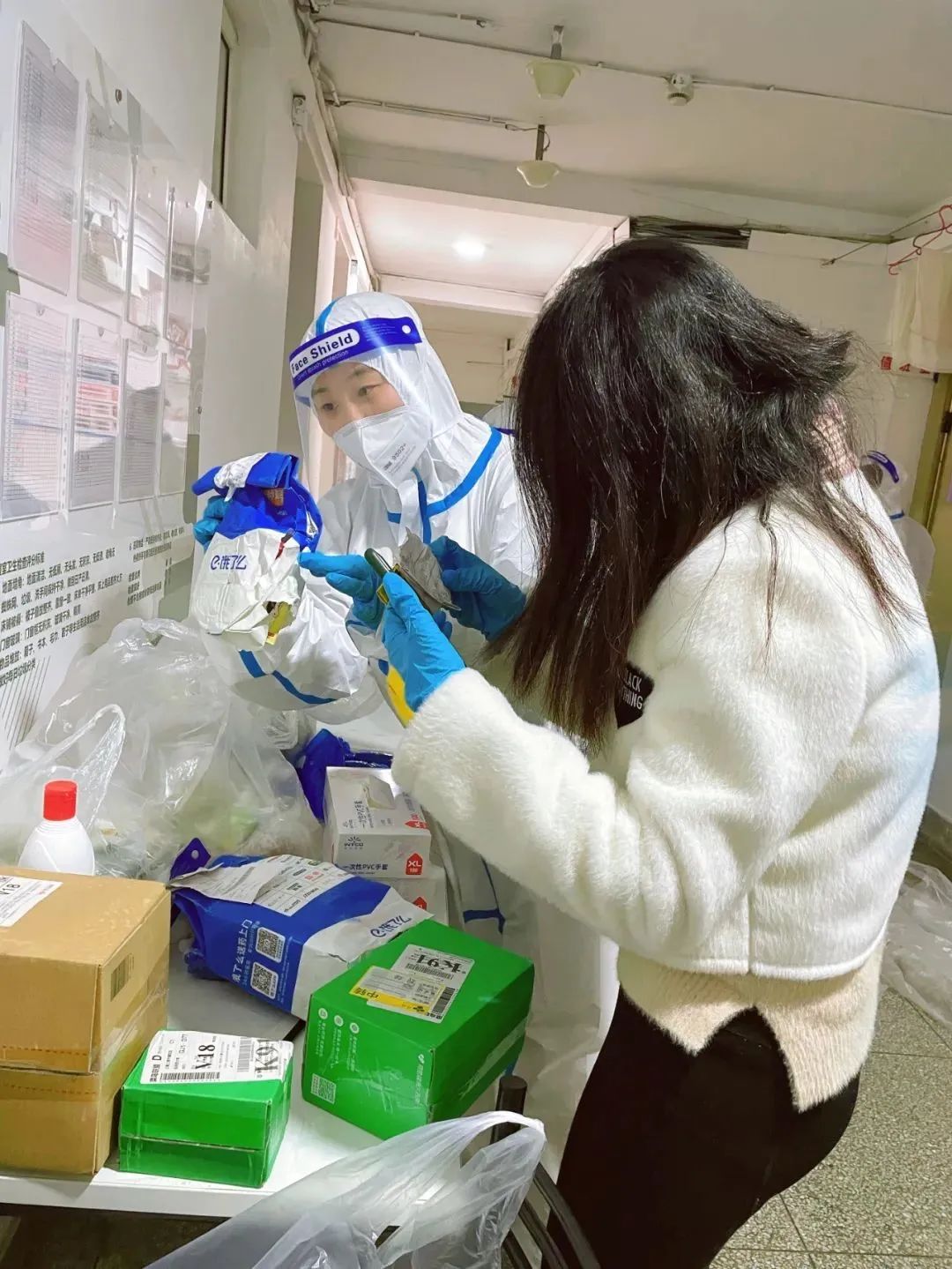教师党员王佳宁在三舍分发药品、快递 防疫落细落实,精准关怀关注 由于国际汉语文化学院国际学生类型多、居住地分散,加上部分学生汉语水平有限,让疫情防控的组织排查增加了不小难度。为使国际学生的管理工作更加到位,学校建立了多个部门的沟通联动机制,组成专门的团队,确保留学生点对点沟通精准到位。当得知部分留学生无法在健康APP上进行实名认证一事后,学院主动联络并借鉴同行经验,促使国际学生登记健康云进行核酸检测的流程进一步优化。