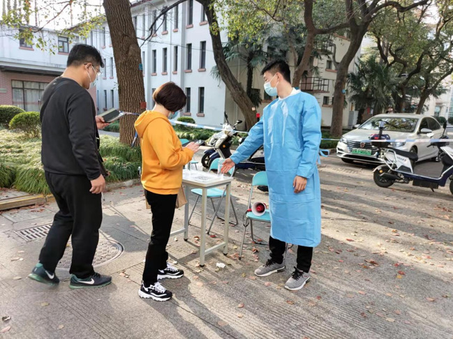 工商本科第二党支部朱培鸿担任普陀校区核酸检测志愿者