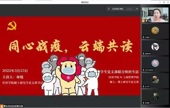 党支部开展抗疫主题组织生活 学部院系学科协同推进,齐心抗疫、保障发展 学部(书院)党委召开线上教工大会,充分调动院系、学科责任教授及全体教工力量,协同推动疫情防控及教学科研、学生管理服务、研究生招生复试、毕业生就业、论文指导等重点工作,践行卓越育人工作宗旨,确保防疫与事业发展两不误。 3月28日晚,为帮助同学们缓解压力,更好规划封闭管理期间的学习生活,经济学院金融系的师生们通过腾讯会议平台举行了多场线上师生交流座谈会。经济与管理学部副主任、经济学院院长殷德生,金融学系主任冉生欣以及相关专业老师和辅导员们参与了本次交流。师生就在线活动、防疫管理、课程学习、实习就业等具体问题进行充分讨论。 3月26日,工商管理学院召开校园防疫封控期间“情绪管理与心理纾困”工作视频会。学部(书院)党委副书记张艳虹、书院副院长王郦玉,工商管理学院院长冯学钢、副院长杨勇、董直庆,学院党支部书记党宁及学院各系主任、学院校友会负责人和全体辅导员参加会议。会议主要针对封控期间学生面临的问题提出了一些具体解决方案,学院将开展线上学术报告会、就业咨询会及形象管理讲座等形式多样的活动,丰富同学们的精神文化生活。 公共管理学院针对不同年级学生需求,由本科生学术班主任分别召开主题班会,并邀请专业老师及高年级同学进行分享交流,在传递学校和学部关爱的同时,及时疏导缓解封控期间学生的焦虑情绪,同时邀请优秀校友为即将毕业的学生做求职分享,要求导师一对一指导毕业生论文写作。 统计学院教师联合辅导员及学术班主任等,开展学生疫情防控主题班会,组团式关心关注学生学习生活及思想状况,服务关怀学生成长。经管书院、专业学位教育中心积极调动各方资源做好毕业生就业工作,筹划推出求职就业朋辈互助、空中宣讲会、春季线上招聘会、名企会面、向用人单位开展简历“每日一推”等云上就业助推活动。与此同时,学部面向本科生和研究生举办多场线上学术报告,丰富学生疫情期间的学术生活。