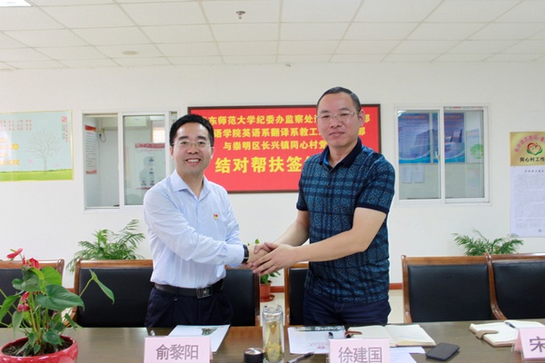 为深入贯彻落实党的十九大精神,推动实施乡村振兴战略,进一步突出政治功能,发挥党建引领作用,根据市委《关于在本市城乡党组织中实施“结对百镇千村 助推乡村振兴”行动计划的指导意见》的文件精神,近日,华东师范大学纪委办监察处巡察办党支部、外语学院英语系翻译系教工联合党支部与崇明区长兴镇同心村党支部结对帮扶签约仪式在同心村党支部委员会举行。华东师范大学纪委办监察处巡察办党支部书记俞黎阳,长兴镇同心村党支部书记徐建国,华东师范大学纪委办监察处巡察办党支部和长兴镇同心村党支部成员出席了本次签约仪式。