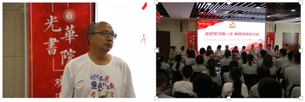 “走好人生第一步”活动现场 走好学习第一步 9月10日下午同时进行的还有“新生·走好第一步”主题党日活动之“走好学习第一步”。生物学系教工党支部动植物学科的党员教师与光华书院生物专业2018级本科新生开展面对面交流活动。生物学系教工党支部书记、生物学系系主任、动物学科姜晓东教授以及植物学科田怀珍副教授分别以《大夏学堂激活大学课堂》和《专业第一课—植物学》作主题交流报告。姜晓东教授用风趣幽默的语言以独特的视角向新生介绍了我校的在线课程教学平台:大夏学堂。运用在教学实践中的闯关式测验、分享式阅读、快测式点名、虚拟式荣誉、图片式报告等新型趣味教学理念引起现场在座师生的阵阵共鸣。田怀珍副教授则以本科生开学后的第一课《植物学》为切入点,循循善诱,告诉大家兴趣是最好的老师,在学习专业课程时一定要多看、多想、多试、多查、多问。