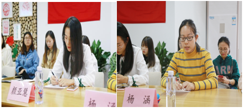 “护航进博会·党员先锋行”座谈交流会 传播学院的的进博会志愿者代表颜亚慧、杨涵同学分别从参与进博会志愿服务的初衷、报名录用的历程、未来服务的决心出发,与在场党员交流心得体会,向我们展示了进博会志愿者的奉献精神。